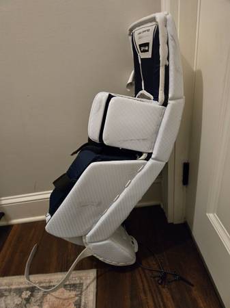 Vaughn Goalie Leg Pads- Velocity V10 Pro Senior Goalie Leg Pads; Size 34+2; White/Navy; Only used for 60 minutes; These Pads retail for $1189.00; Selling because the wrong size was purchased....